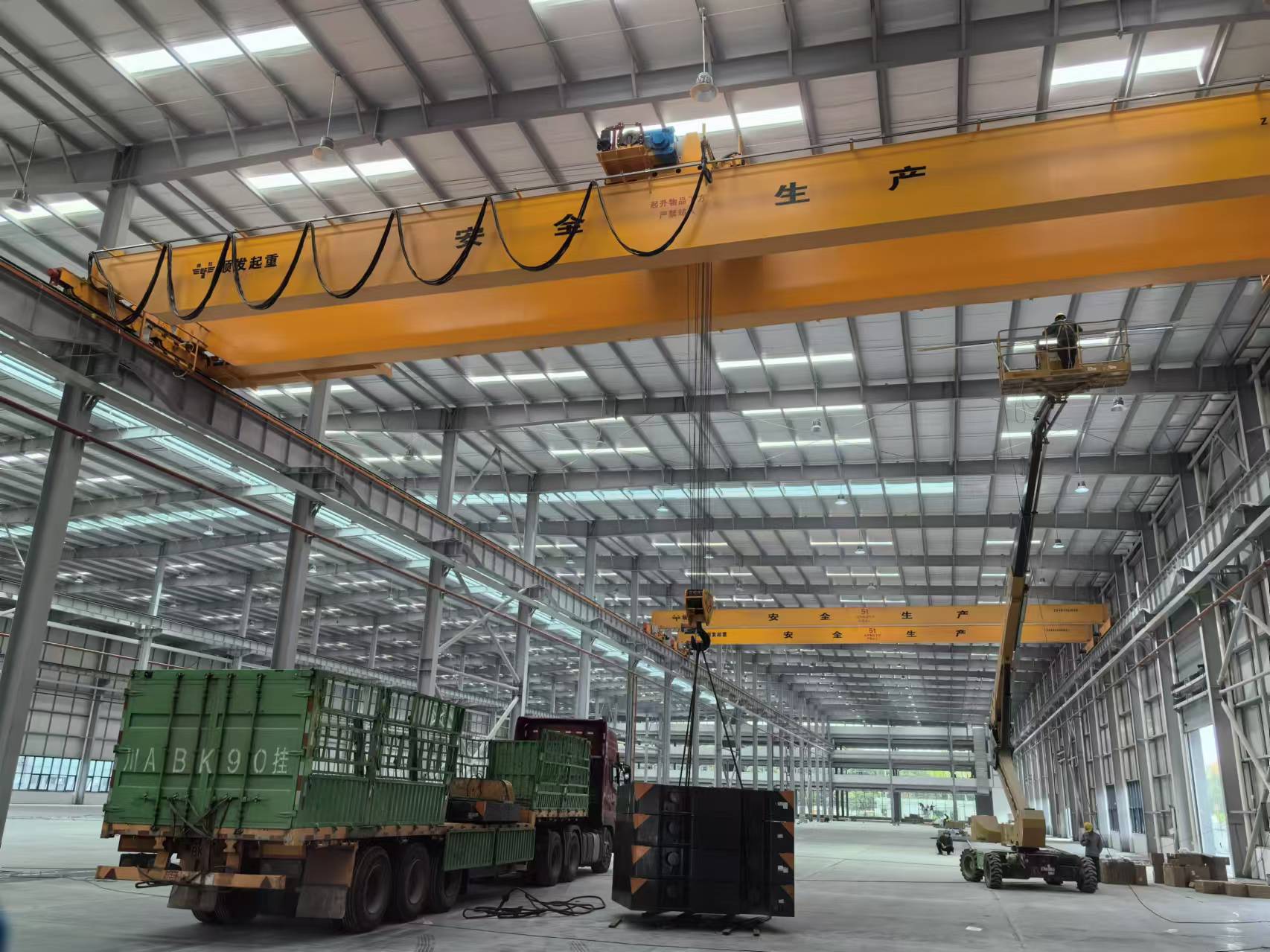 歐式雙梁起重機(jī)具有良好的承載能力,起重量從3t噸到80噸,跨度可達(dá)40米,吊鉤可提升至兩主梁之間的中間位置,大大提高了提升高度,有檢修平臺(tái)及護(hù)欄,方便維護(hù)檢修。歐式雙梁起重機(jī)是工業(yè)應(yīng)用的理想選擇,在市場(chǎng)上非常受歡迎。它具有性能優(yōu)越、結(jié)構(gòu)緊湊、自重輕、綠色環(huán)保節(jié)能、靜音、輪壓小、安全可靠和運(yùn)行高能等特點(diǎn),可以幫助您有效利用可用空間,節(jié)省廠房的整體投資成本,提高生產(chǎn)效率、減少日常維護(hù)、節(jié)省運(yùn)營(yíng)能源消耗,取得更好的投資回報(bào)。