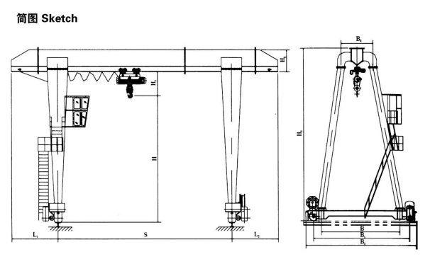 5t單梁門式起重機主要性能及技術參數