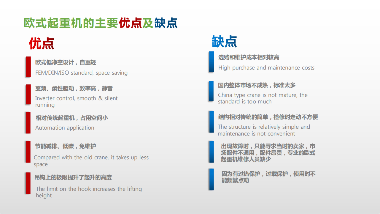 歐式起重機(jī)的主要優(yōu)點(diǎn)及缺點(diǎn)說明