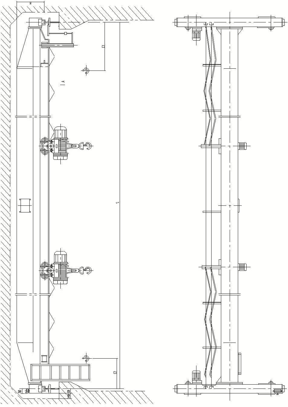 例:起重量:5t+5t,跨度:16.5m,工作級別:A5